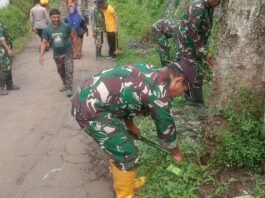 Soliditas Babinsa dan Warga Dadapan Bersihkan Bahu Jalan Dusun Karang Mulyo