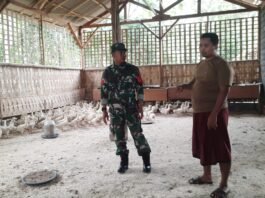 Komsos Babinsa Bersama Pengelola Bumdes, Perkuat Usaha Ternak Itik di Wates...