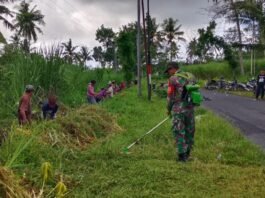 Pererat Gotong Royong, Babinsa Bago Dampingi Warga Bersihkan Sekolah dan Jalan