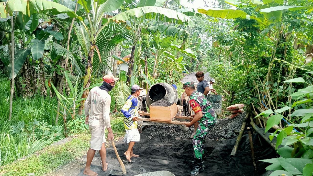 Sertu Mujahidin terlihat turut membantu di lapangan, berbaur dengan warga dalam proses pengecoran sebagai wujud nyata dari semangat gotong royong yang masih terjaga di wilayah pedesaan. Menurutnya, pendampingan adalah bagian dari tugas kewilayahan Babinsa dalam mendukung program pembangunan desa, serta memperkuat kemanunggalan TNI dengan rakyat.