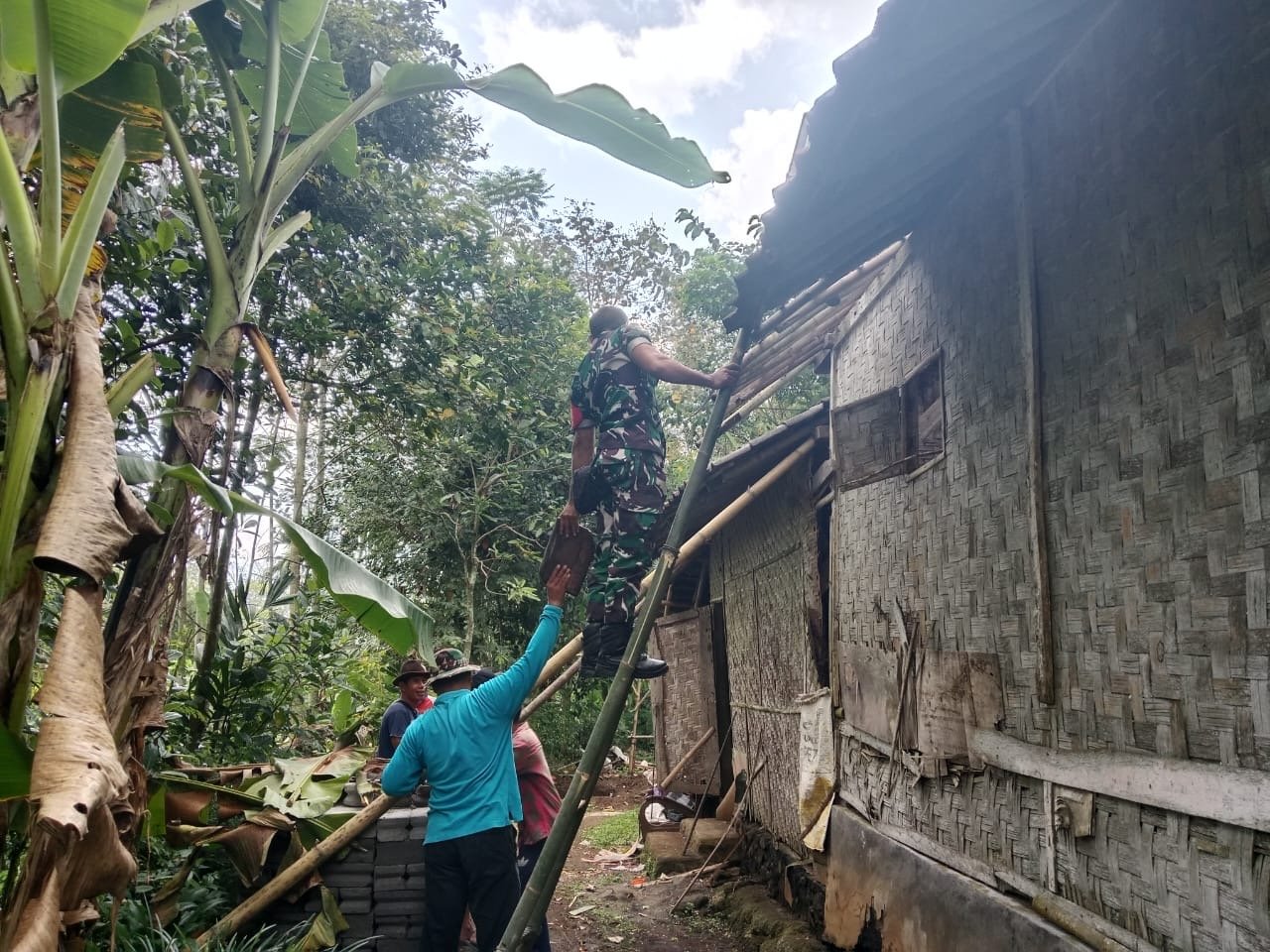 Kegiatan tersebut menyasar rumah milik Lina (53), salah satu warga yang membutuhkan bantuan perbaikan tempat tinggal agar lebih layak huni. Dalam pelaksanaannya, Babinsa turut hadir mendampingi sekaligus membantu proses renovasi bersama pihak terkait dan warga sekitar.