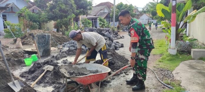 Lumajang, Wujud nyata peran aktif TNI dalam mendukung pembangunan wilayah kembali ditunjukkan oleh Babinsa Jogoyudan Koramil 0821-01/Lumajang, Serda M. Mu’ali, yang melaksanakan pendampingan sekaligus pengawalan perbaikan drainase sepanjang 200 meter di Jl. Bengawan Solo RT 002 RW 003, Kecamatan Lumajang, Kabupaten Lumajang, Jawa Timur, pada Jumat (7/11/2025).