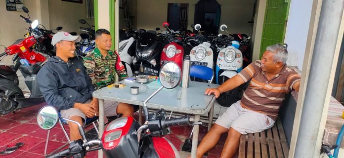 Lumajang, Babinsa Pronojiwo dari Koramil 0821/14 Pronojiwo, Sertu Agus Lasto, kembali menegaskan komitmen TNI dalam menjaga keamanan dan kedekatan dengan masyarakat melalui kegiatan Komunikasi Sosial (Komsos) dengan H. Achmad, seorang pengusaha jual beli sepeda motor di Desa Pronojiwo, Kecamatan Pronojiwo, Kabupaten Lumajang, Jawa Timur, pada Jumat (28/6/2024).