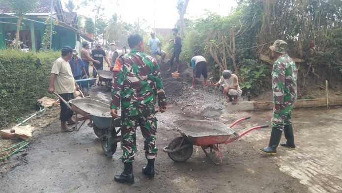 “Kegiatan Karya bakti pembangunan jalan rabat beton yang dilaksanakan, sebagai bentuk pendampingan dalam mendukung program pemerintah desa, untuk memberikan kelancaran akses jalan warga untuk menunjang perekonomian lebih maju,” kata Sertu Masrohim.