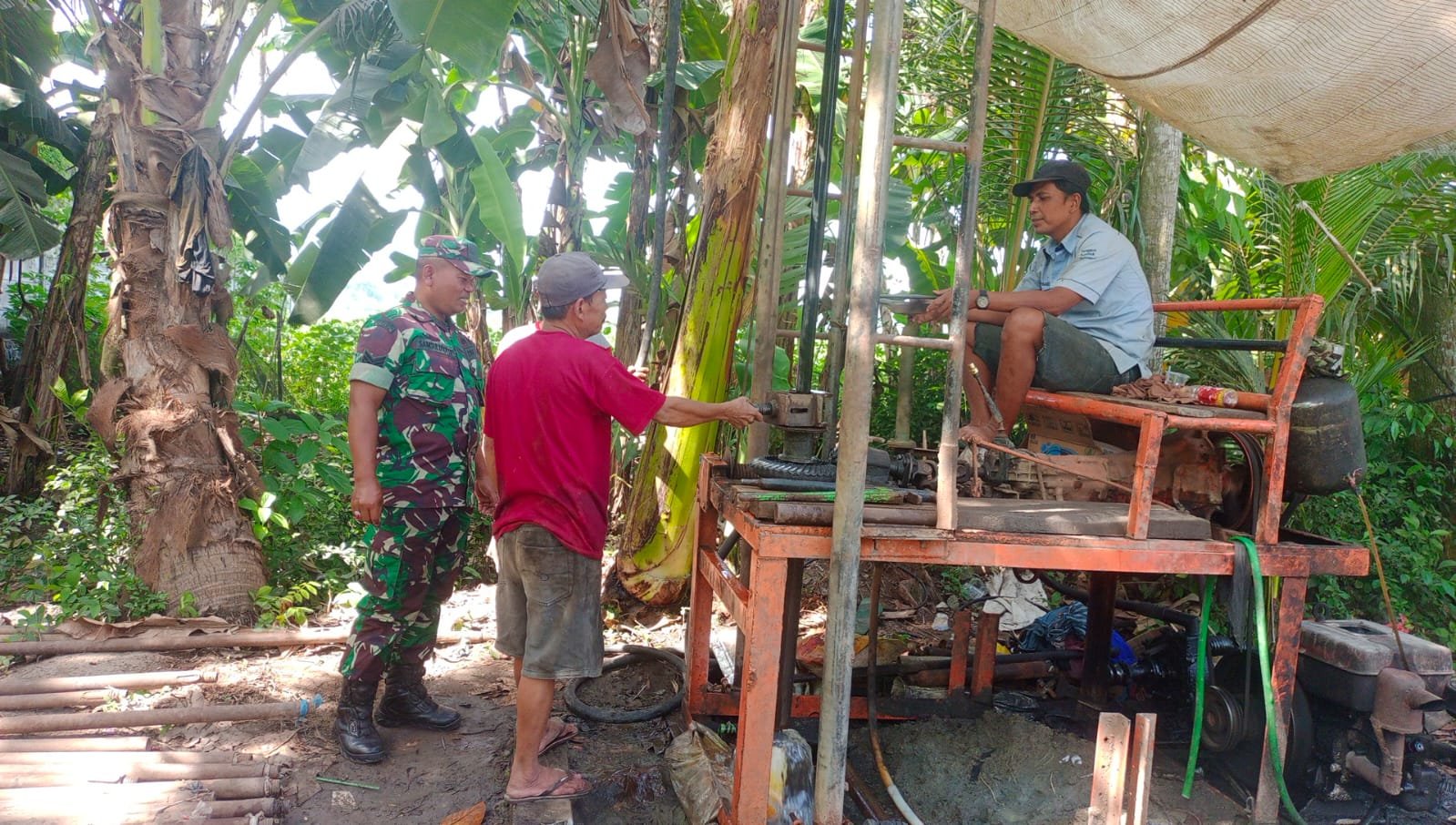 Babinsa Sukosari Dampingi dan Monitor Pengeboran Air Artesis untuk Kebutuhan Air Bersih di Dusun Pondok Jaya