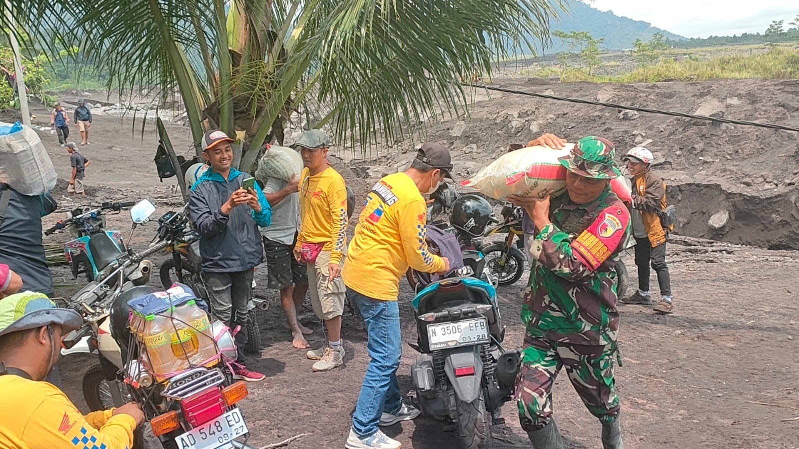 Bantuan logistik menjadi salah satu kebutuhan mendesak bagi warga yang rumah dan akses lingkungannya terdampak material banjir lahar dingin. Kehadiran TNI bersama relawan sangat membantu mempercepat penyaluran bantuan, terutama ke lokasi-lokasi yang relatif sulit dijangkau karena kondisi medan yang masih labil.