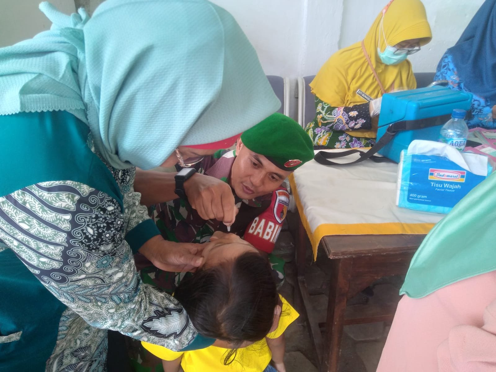 Babinsa Tegalrandu Dampingi Tim Nakes Salurkan Pin Polio Kepada Warga Balita