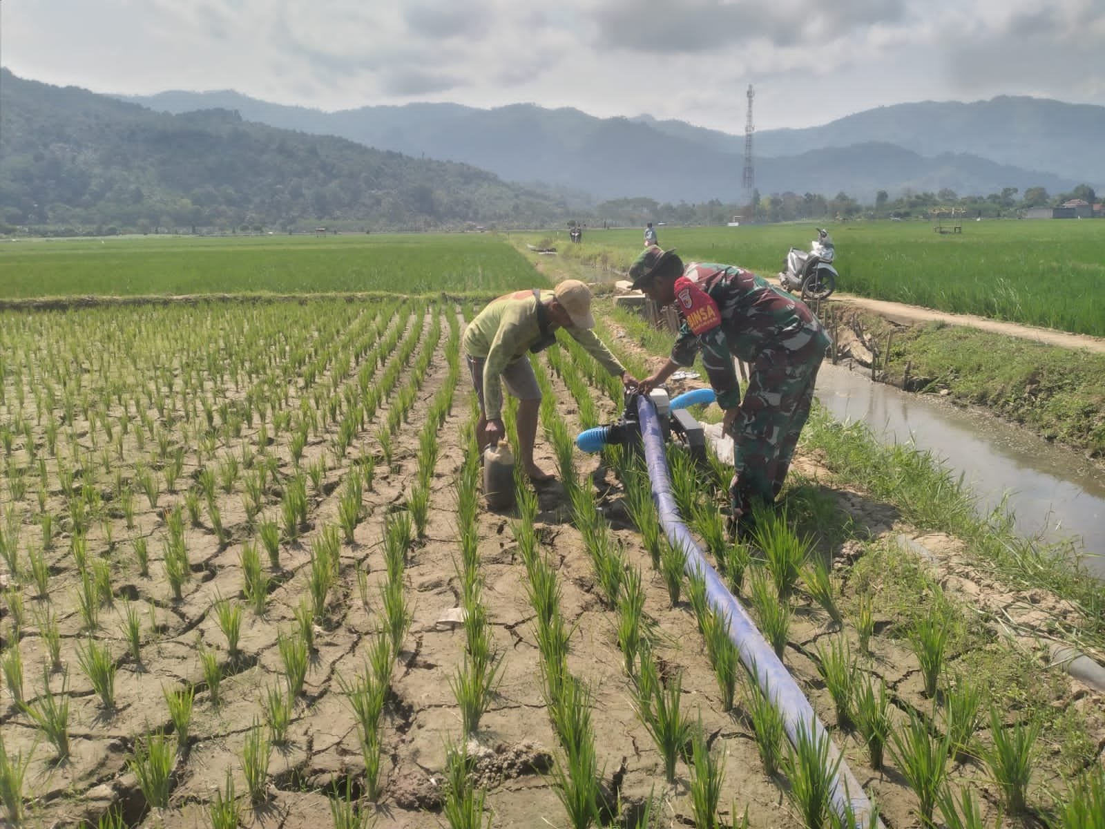 Bapak Sujatmiko, pemilik lahan yang mendapatkan bantuan, menyampaikan rasa terima kasihnya atas perhatian dan bantuan yang diberikan oleh TNI, Kami sangat terbantu dengan adanya mesin pompa air dari Kementrian Pertanian.
