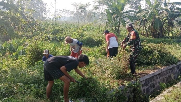 Babinsa Wonogriyo dan Warga Ledokrejo Kompak Bersihkan Parit, Wujud Nyata Manunggal TNI Bersama Rakyat