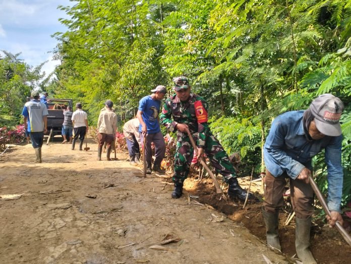 Lumajang, Babinsa Sombo Koramil 0821/04 Gucialit, Koptu Sutawi, bersama warga Desa Sombo melaksanakan kegiatan kerja bakti pemasangan pipa baru untuk saluran air bersih sepanjang 2 kilometer di Dusun Argodadi RT 004 RW 002, Desa Sombo, Kecamatan Gucialit, Kabupaten Lumajang, Jawa Timur, pada Minggu (4/8/2024).