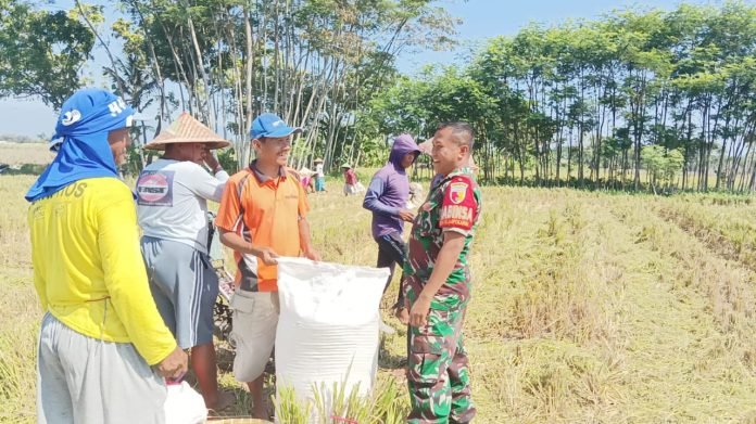 Lumajang, Sebagai upaya dalam mewujudkan swasembada pangan, Babinsa Klampokarum Koramil 0821/15 Telung Sertu Wawan Efendi melaksanakan pendampingan kepada petani saat panen padi, di Dusun Krajan Desa Klampokarum Kecamatan Tekung Kabupaten Lumajang, Jawa Timur, Selasa (2/1/2024).