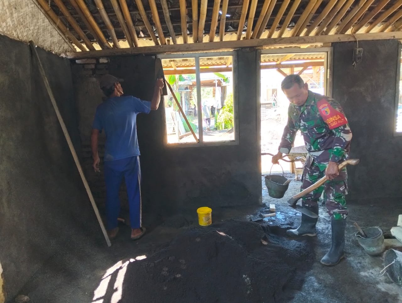 Lumajang, Wujud nyata kepedulian terhadap masyarakat di wilayah binaan, Babinsa Gucialit Koramil 0821-04/Gucialit, Koptu Abd. Halik Baso, yang turut serta membantu warga melaksanakan renovasi rumah milik Satuki, warga Dusun Sidodadi RT 003 RW 010, Desa Gucialit, Kecamatan Gucialit, Kabupaten Lumajang, Jawa Timur, Minggu (19/10/2025).