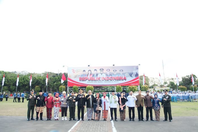 Lumajang – Dandim 0821/Lumajang Letkol Inf Ronny Wijaya Koesuma mengikuti upacara penurunan bendera dalam rangka peringatan HUT ke-79 Republik Indonesia yang dilaksanakan di Alun-Alun Lumajang, Jawa Timur, Sabtu (17/8/2024).