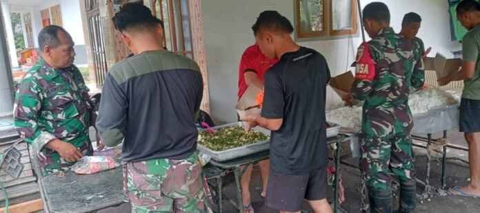 Lumajang – Dalam situasi pasca erupsi Gunung Semeru yang masih menyisakan tantangan besar bagi warga terdampak, prajurit Kodim 0821/Lumajang kembali menunjukkan komitmen kemanusiaannya. Dipimpin Serma Cahyo, anggota Kodim 0821 melaksanakan tugas memasak dan mengemas ratusan porsi nasi di dapur umum Desa Supiturang, Kecamatan Pronojiwo, sebagai bagian dari dukungan penuh bagi masyarakat yang tengah mengungsi. Senin(1/12/2025)