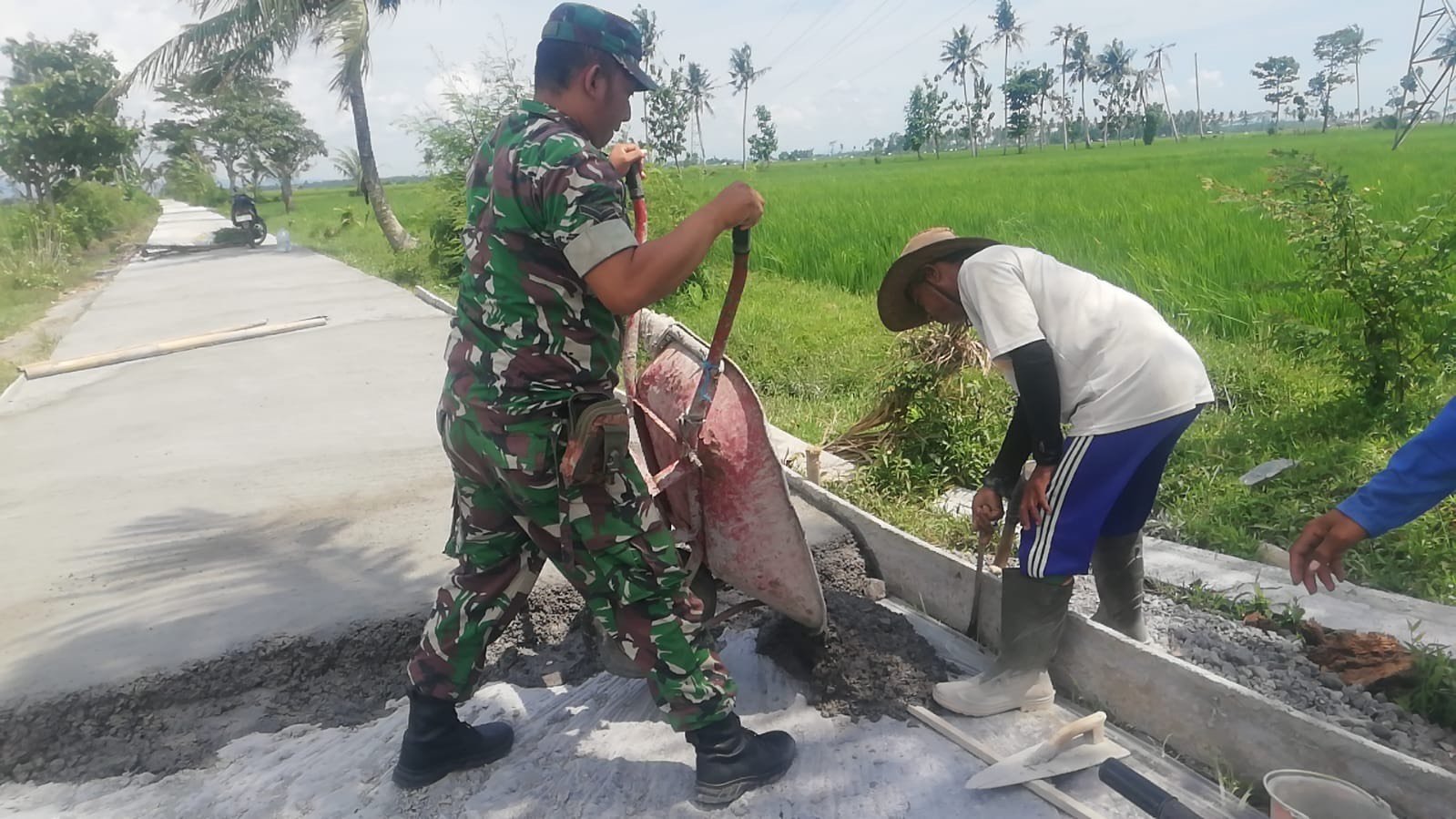 Dukung Infrastruktur Desa, Babinsa Banyuputih Kidul Terjun Langsung Dampingi Pembangunan Jalan Rabat Beton