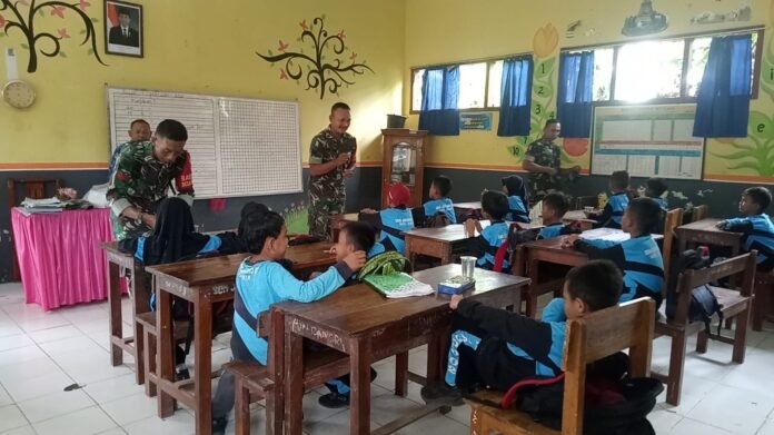 Lumajang, Sebagai wujud kepedulian terhadap kesehatan anak usia sekolah, Babinsa Jatigono Koramil 0821-13/Kunir Sertu Tiar Affandi, bersama dua personel, melaksanakan pendampingan kegiatan pemberian vitamin dan obat cacing bagi para siswa-siswi SD Negeri Jatigono 01 di Desa Jatigono, Kecamatan Kunir, Kabupaten Lumajang, Jawa Timur. Kamis (4/11/2025).