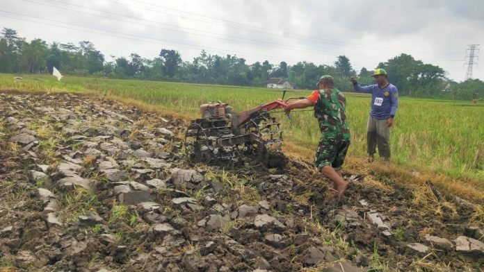 Dukung Ketahanan Pangan Lokal, Babinsa Jatiroto Dampingi Pengolahan Lahan Kelompok Tani “Tani Maju”