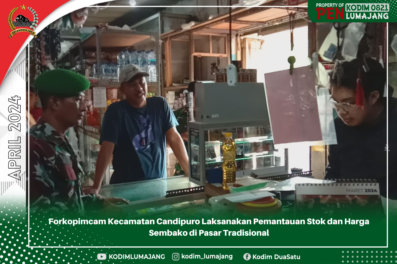 “Melalui kegiatan pengecekan stok dan harga sembako ini, diharapkan dapat memberikan kepastian dan perlindungan konsumen terhadap harga kebutuhan pokok yang stabil dan terjangkau. Forkopimcam Candipuro, serta pihak terkait lainnya siap terus berkoordinasi dan melakukan langkah-langkah preventif agar masyarakat dapat merayakan hari raya Idulfitri dengan sejahtera dan tenteram,” pungkasnya. (Pendim 0821).