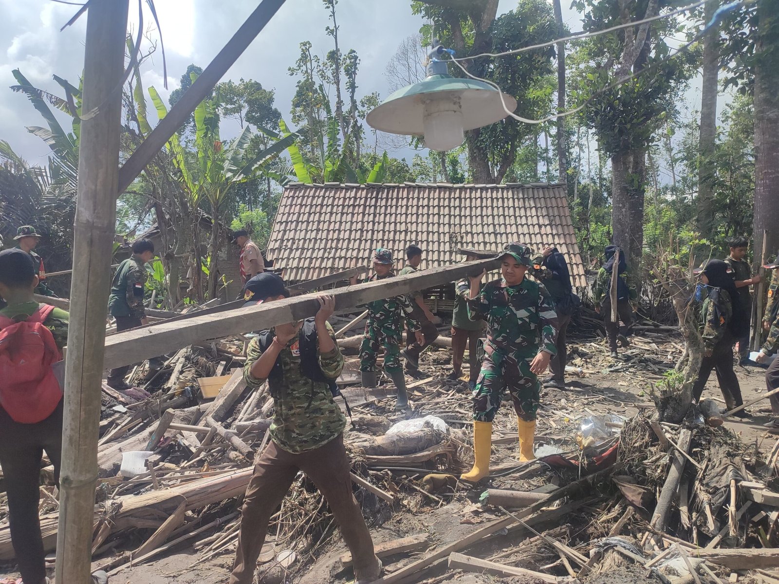 “Hari ini kami bersama adik-adik Saka Wira Pramuka turun langsung membantu membersihkan rumah warga yang terdampak. Kondisi di lapangan memang cukup berat karena banyak material lahar yang mengeras, namun dengan kebersamaan semua bisa kita selesaikan. Kami ingin masyarakat merasa tidak sendiri. TNI akan selalu ada untuk membantu,” ungkap dia.