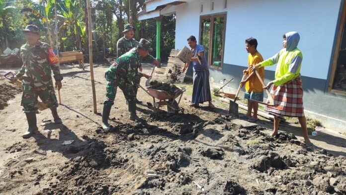 Lumajang – Upaya pemulihan pasca erupsi Gunung Semeru terus digencarkan. Personel gabungan Kodim 0821/Lumajang dan Yonif 527/BY turun langsung membantu warga membersihkan material vulkanik yang menimbun halaman serta bagian dalam rumah di Dusun Sumbersari, Desa Supiturang, Kecamatan Pronojiwo, Lumajang, Senin (1/12/2025).