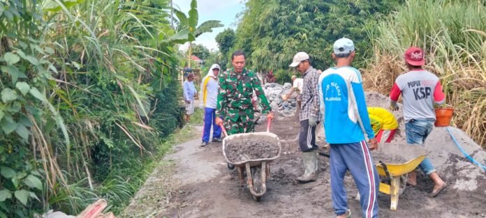 Lumajang, Dalam upaya mendukung peningkatan infrastruktur pertanian di wilayah pedesaan, Babinsa Babakan Koramil 0821-20/Padang, Serda Dewantoro, melaksanakan pendampingan giat kerja bakti pembangunan saluran irigasi air di Dusun Krajan RT 002 RW 006 Desa Babakan, Kecamatan Padang, Kabupaten Lumajang, Jawa Timur, pada Senin (15/9/2025).