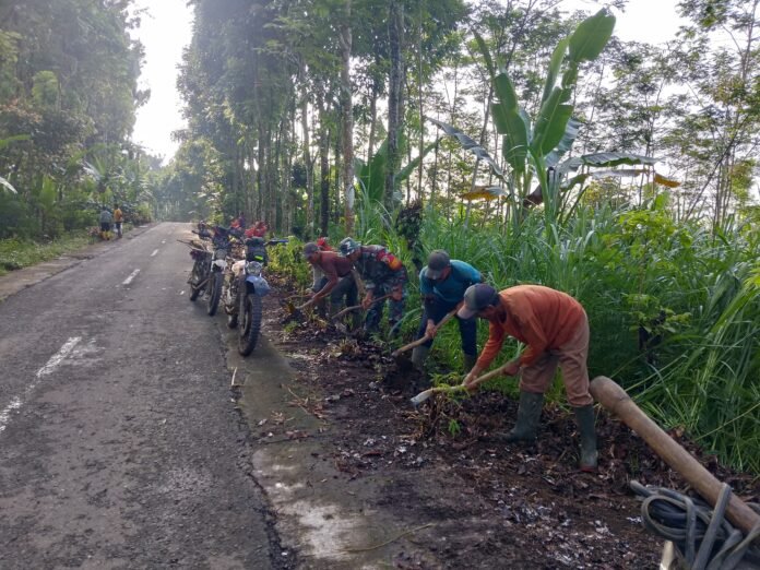 Lumajang, Semangat kebersamaan dan kepedulian terhadap lingkungan, Babinsa Desa Burno Koramil 0821-03/Senduro, Sertu Jumali bersama warga melaksanakan kerja bakti pembersihan kanan kiri jalan di Dusun Gondang dan Dusun Karanganyar, Desa Burno, Kecamatan Senduro, Kabupaten Lumajang, Jawa Timur, pada Sabtu (8/11/2025).