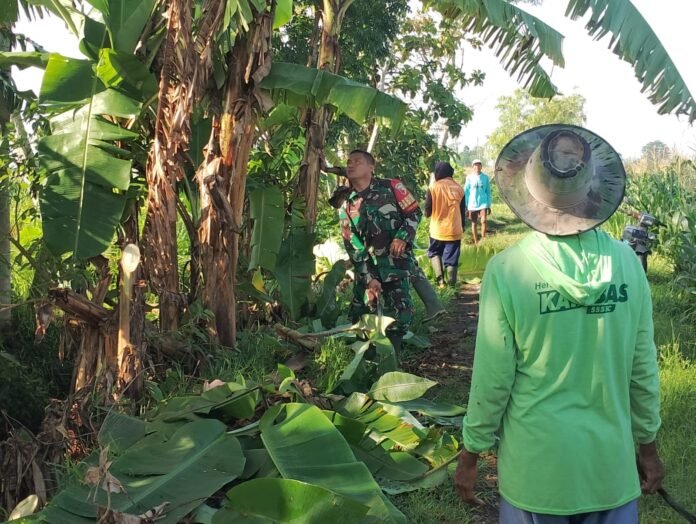 Lumajang, Semangat gotong royong kembali digaungkan Babinsa Nogosari Koramil 0821-16/Rowokangkung, Sertu Agus Setiawan, bersama petugas PU Pengairan dan warga setempat melaksanakan kerja bakti membersihkan aliran irigasi tersier di Desa Nogosari, Kecamatan Rowokangkung, Kabupaten Lumajang, Jawa Timur, pada Sabtu (15/11/2025).