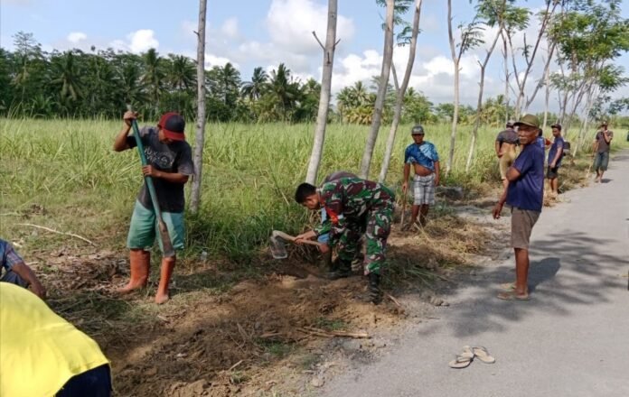 Lumajang – Sebagai wujud membina semangat kebersamaan dan gotong royong, Babinsa Sumberrejo Koramil 0821-09/Candipuro, Sertu Yuliantono, yang bersama warga melaksanakan kegiatan kerja bakti pembuatan parit di kanan dan kiri jalan sepanjang 675 meter di area pertanian Dusun Candilor RT 006 RW 004 Desa Sumberrejo, Kecamatan Candipuro, Kabupaten Lumajang, Jawa Timur, pada Selasa (24/2/2026).