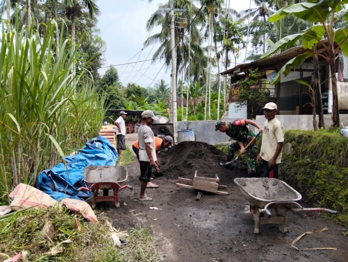 Lumajang – Semangat gotong royong kembali terlihat di tengah masyarakat. Babinsa Sumberpetung Koramil 0821-06/Ranuyoso, Kopka Baron Adi Saputro, melaksanakan pendampingan kegiatan kerja bakti pengecoran jalan rabat beton sepanjang 250 meter di Dusun Krajan RT 006 RW 001, Desa Sumberpetung, Kecamatan Ranuyoso, Kabupaten Lumajang, Jawa Timur, pada Senin (2/2/2026).