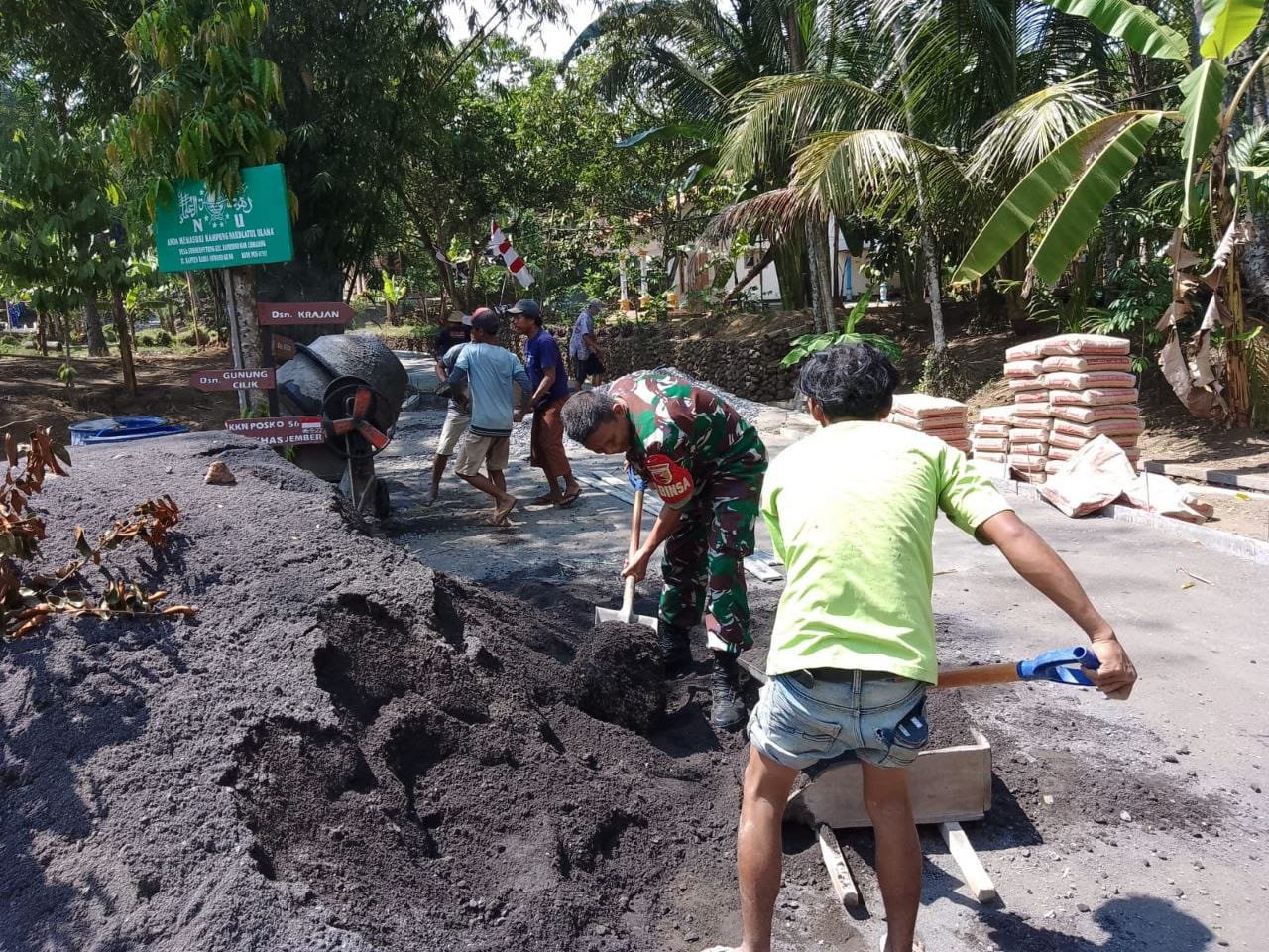 Kepala Dusun Krajan, Bebun, yang turut hadir dan ikut serta dalam kegiatan tersebut, mengungkapkan rasa terima kasihnya kepada seluruh warga dan TNI yang telah berkolaborasi dalam proyek pembangunan tersebut dapat terlaksana.