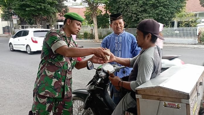 Lumajang, Dalam rangka menjalin silaturahmi dengan masyarakat, Koramil 0821/01 Lumajang menggelar Jumat Berkah dengan membagikan nasi bungkus kepada pengguna jalan, depan Makoramil Lumajang Kabupaten Lumajang, Jawa Timur, Jumat (16/2/2024).