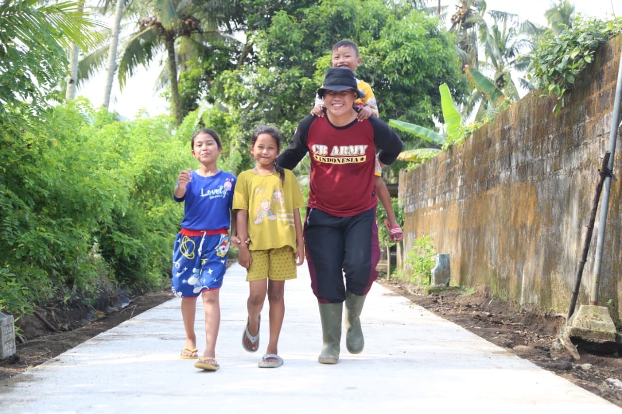 Keceriaan anak-anak yang bermain di atas jalan baru itu menjadi bukti bahwa kehadiran TNI melalui TMMD tidak hanya membangun sarana, tetapi juga menumbuhkan semangat, harapan, dan rasa kebersamaan di tengah masyarakat pedesaan.