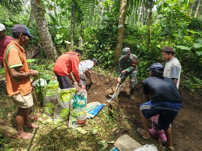 “Kami memilih penanganan awal dengan melaksanakan kerja bakti bersama warga dan Babinsa agar jalan setapak ini segera dapat digunakan kembali dengan aman. Selain mempercepat perbaikan, kegiatan ini juga memperkuat kebersamaan serta kepedulian masyarakat terhadap lingkungan desa,” terangnya.