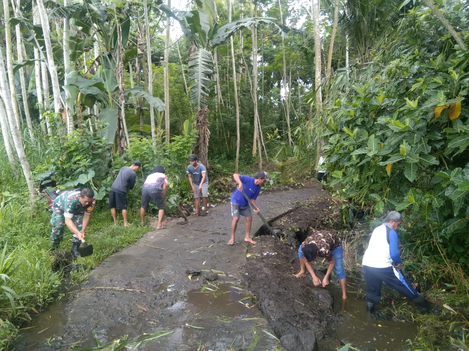 Lumajang, Dalam upaya meningkatkan kesadaran masyarakat akan pentingnya menjaga kebersihan lingkungan dan pemeliharaan infrastruktur desa, Babinsa Jarit Koramil 0821-09/Candipuro, Serka Wahyudi, bersama warga Dusun Bulak Klakah, Desa Jarit, Kecamatan Candipuro, Kabupaten Lumajang, Jawa Timur, pada Rabu (9/10/2024).