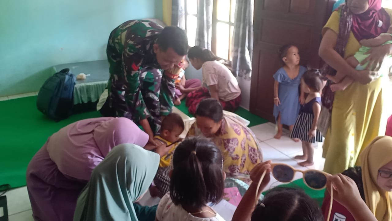 Lumajang, Dalam upaya memastikan kesehatan dan perkembangan optimal bagi balita di wilayahnya, Babinsa Kebonan Koramil 0821/05 Klakah, Koptu Nasarudin, terus menggalang kolaborasi dengan bidan desa. Kolaborasi ini mengemuka saat Babinsa Kebonan, Koptu Nasirudin, ikut serta dalam kegiatan Posyandu yang berlangsung di Posyandu Anyelir, Dusun Krajan 1, RT 003 RW 001, Desa Kebonan, Kecamatan Klakah, Kabupaten Lumajang, Jawa Timur, pada hari Senin (13/5/2024).