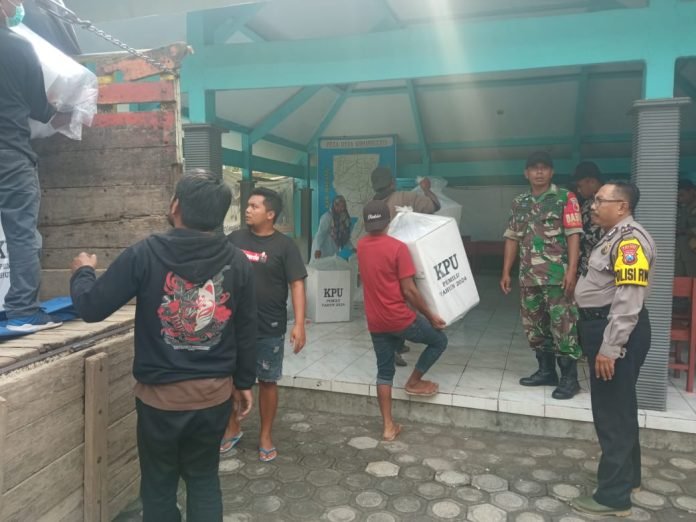 Lumajang, Sebagai upaya memberikan kelancaran berjalan aman, Danramil 0821/14 Pronojiwo bersama Kapolsek Pronojiwo turun langsung memimpin pendistribusian logistik Pemilu 2024 untuk di TPS wilayah binaan.