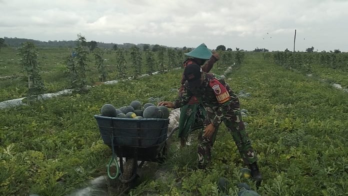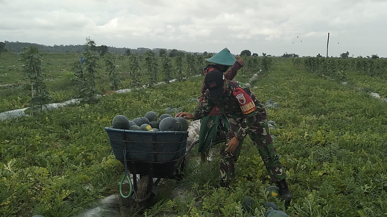 Kopda Ahmad Latip Bantu Petani Panen Semangka di Pandanwangi