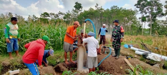 Mengatasi Kekeringan, Babinsa Tekung Dampingi Pembuatan Sumur Bor di Poktan Krajan Tani