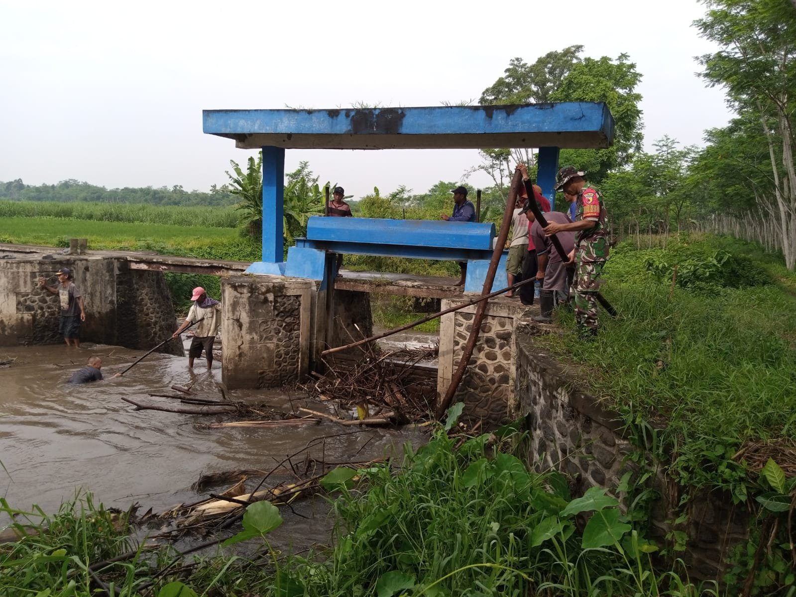 Lumajang, Babinsa Sumbersari Koramil 0821/16 Rowokangkung Sertu Maer Iswanto bergotong-royong bersama warga Himpunan Petani Pemakai Air (Hippa) melaksanakan kerja bakti pembersihan aliran Dam Glinding Desa Sumbersari Kecamatan Rowokangkung Kabupaten Lumajang, Jawa Timur, Sabtu (16/3/2024).