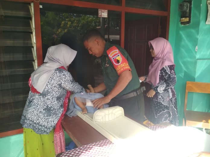 Pantau Tumbuh Kembang Balita, Babinsa Bersinergi dengan Bidan Desa Monitoring Posyandu