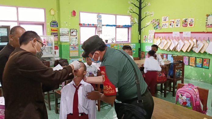 Dalam kesempatan itu, Serda Warsono mengatakan, bahwa kegiatan pendampingan kepada tenaga kesehatan, merupakan bentuk sinergi dalam berkolaborasi dalam rangka menyehatkan anak bangsa di wilayah binaan.