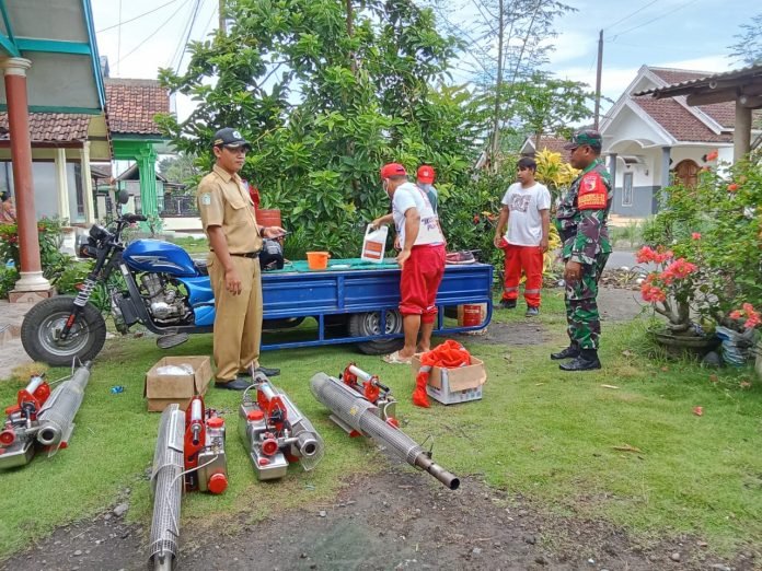 Peduli Kesehatan Warga, Babinsa Kalipepe Dampingi Kegiatan Fogging di Wilayah Binaan