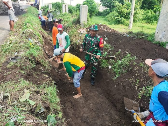 Lumajang, Dalam upaya menjaga lingkungan yang bersih dan sehat, TNI dan warga Desa Karanganyar Kecamatan Yosowilangun Kabupaten Lumajang, Jawa Timur bergandengan tangan dalam kerja bakti untuk mempersiapkan pembangunan drainase. Kegiatan tersebut menjadi langkah awal yang sangat penting untuk memastikan kelancaran proses pembangunan tersebut.