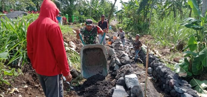 Pendampingan Babinsa Percepat Pembangunan Drainase Kali Kepoh di Kedungjajang
