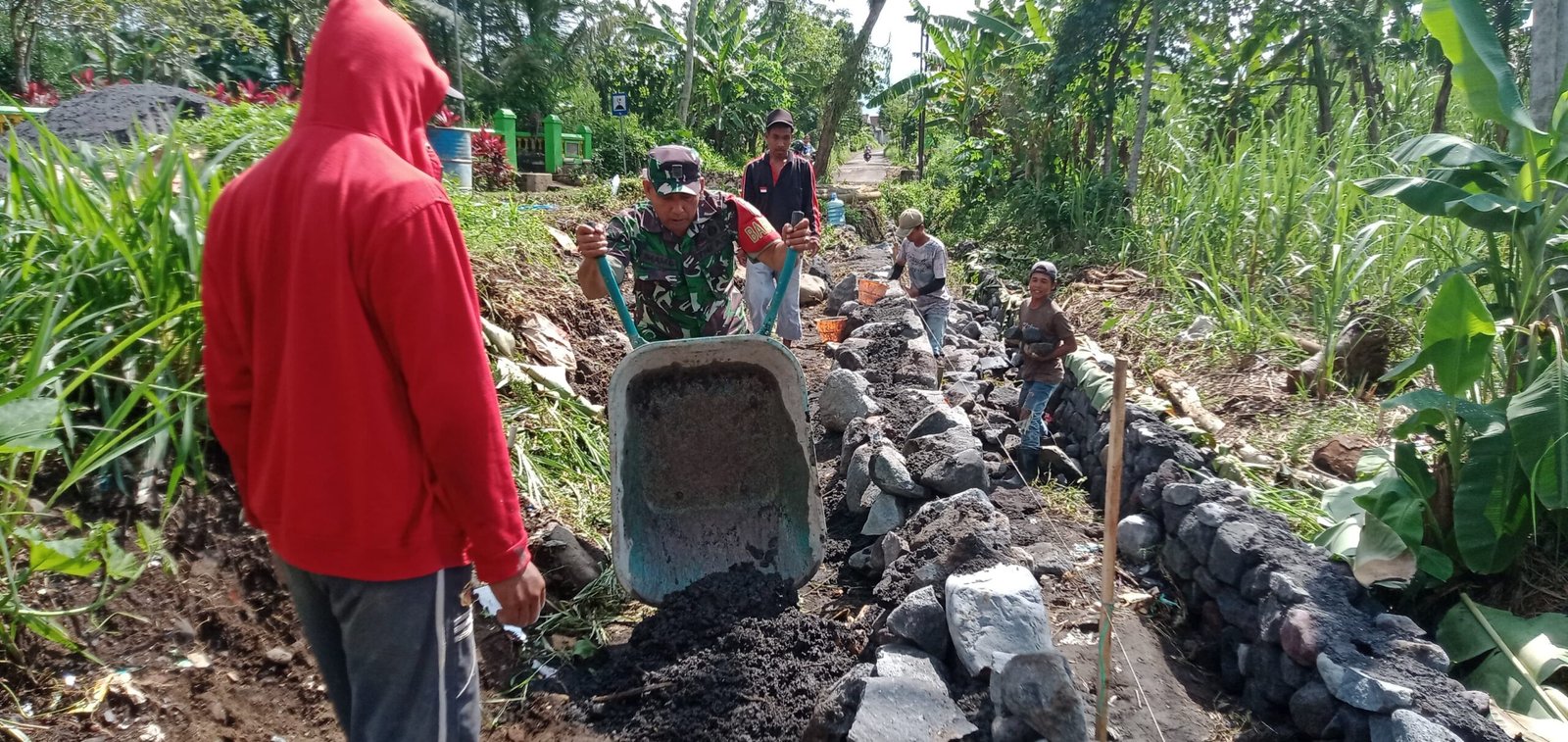 Serma Imam Ghuzoli menyampaikan bahwa pendampingan Babinsa tidak hanya sebatas membantu secara fisik, namun juga memberikan motivasi dan menumbuhkan semangat gotong royong di tengah masyarakat.