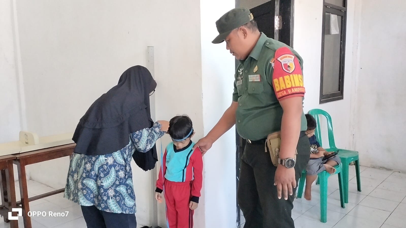 Lumajang, Babinsa Ranuyoso Koramil 0821/06 Ranuyoso Koptu Sudarmono, melaksanakan pendampingan kegiatan Posyandu Melati Putih di Balai Desa Ranuyoso, Dusun Krajan RT 001 RW 001, Desa Ranuyoso, Kecamatan Ranuyoso, Kabupaten Lumajang, Jawa Timur, Jumat (14/6/2024).