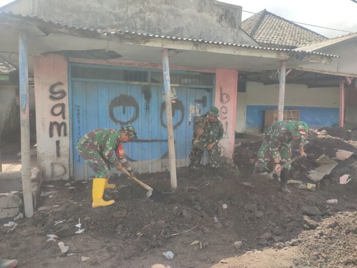 Percepatan Pemulihan: TNI Lumajang Gotong Royong Bersihkan Material Lahar di Rumah Warga