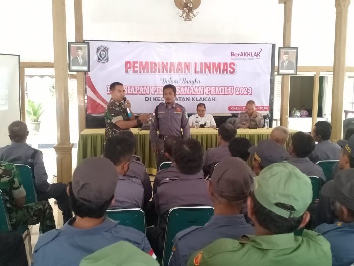 Lumajang, Sebagai upaya pemantapan sumberdaya Linmas, Forkopimcam KLakah menggelar pembinaan kepada Linmas dalam rangka persiapan pengamanan pemilu 2024 Bertempat di Pendopo Kecamatan Jatiroto Kabupaten Lumajang, Jawa Timur, Rabu (7/2/2024).