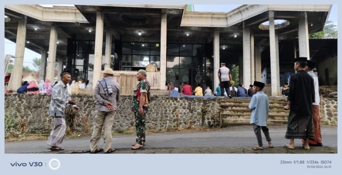 Lumajang, Dalam rangka memberikan rasa aman dan nyaman kepada masyarakat yang melaksanakan salat Idulfitri, personel Koramil 0821/04 Gucialit turut aktif dalam melaksanakan pengamanan. Kegiatan tersebut dilaksanakan di Masjid Nurul Sholihin, Dusun Sidomakmur RT 003 RW 003, Desa Gucialit, Kecamatan Gucialit, Kabupaten Lumajang, Jawa Timur, Rabu (10/4/2024).
