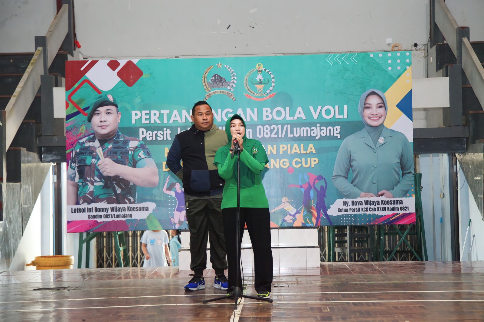 Lumajang, Dandim 0821/Lumajang Letkol Inf Ronny Wijaya Koesuma didampingi oleh Ketua Persit KCK Cabang XXXV Kodim 0821 Lumajang Ny. Nova Wijaya Koesuma membuka pertandingan bola voli antar ranting Persit jajaran Cabang XXXV Kodim 0821 Lumajang yang memperebutkan Piala Dandim Lumajang Cup bertempat di GOR Wira Bhakti Lumajang, Jawa Timur, Selasa (6/8/2024)